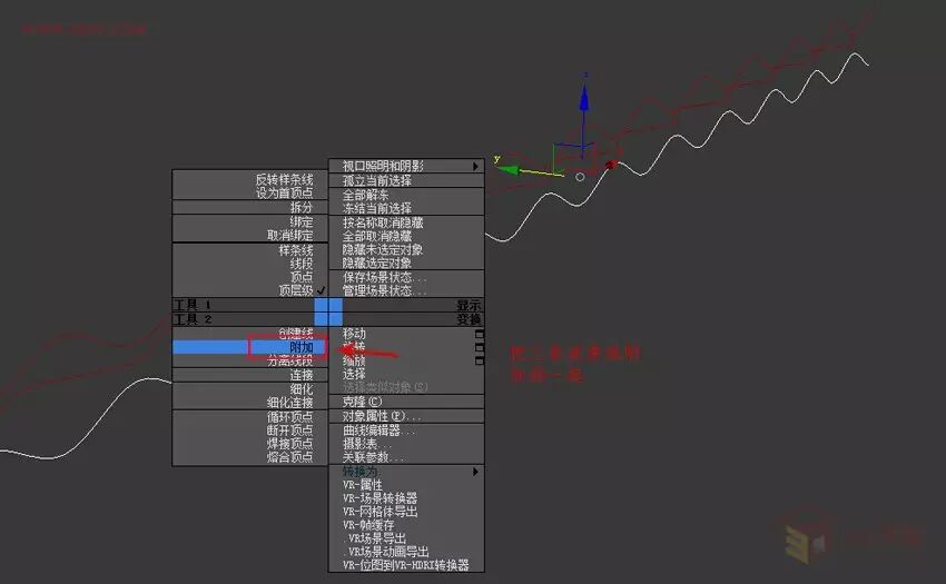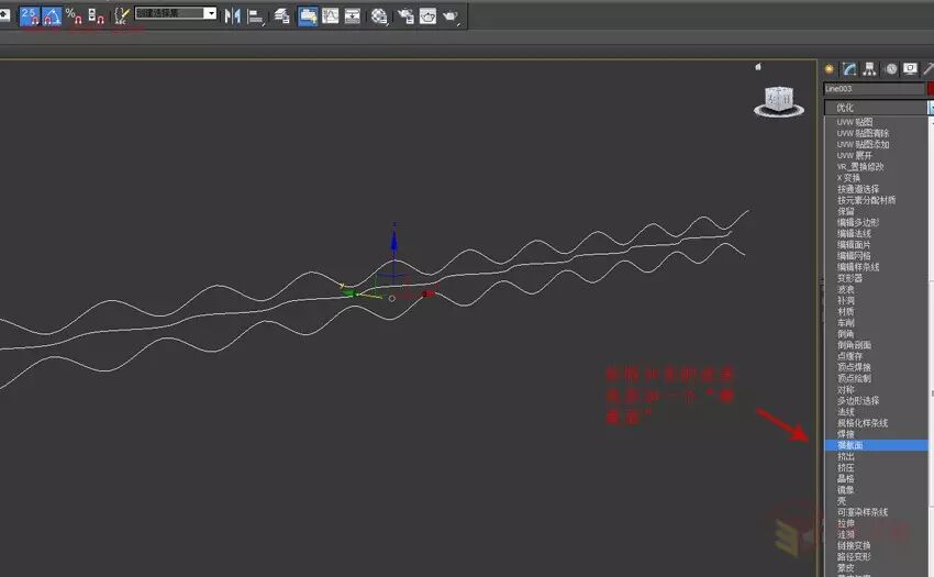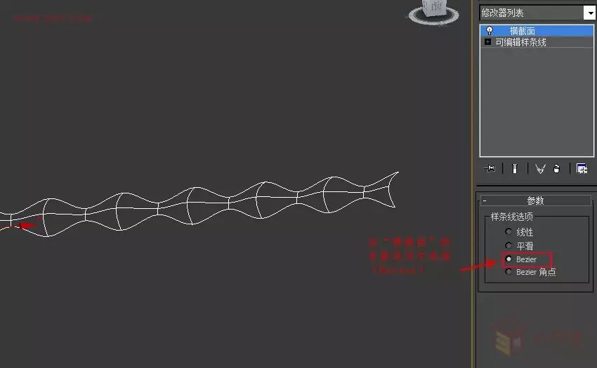 8.在前视图里给线段加一个(FFD)调节一下波浪的形态。