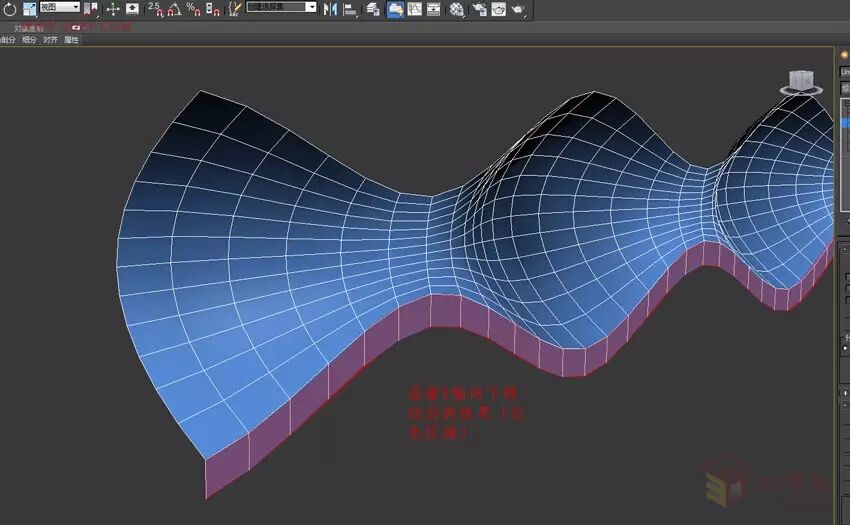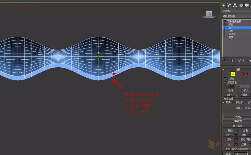 22.把选择好的边线按键(shift),沿着Y轴向下移动。如图: