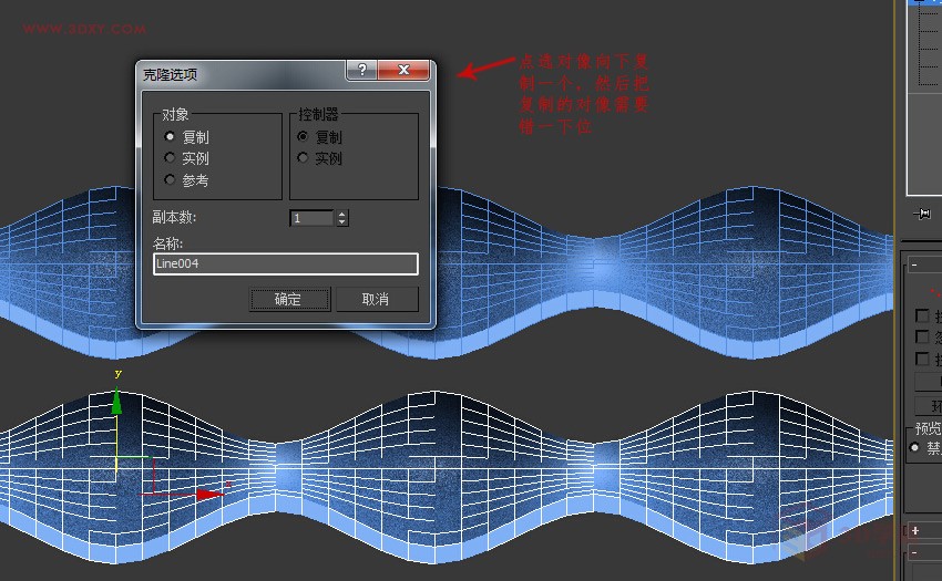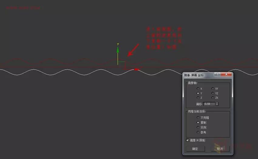 13.进入前视图,把上面的波浪线向下复制一个(注意位置)如图: