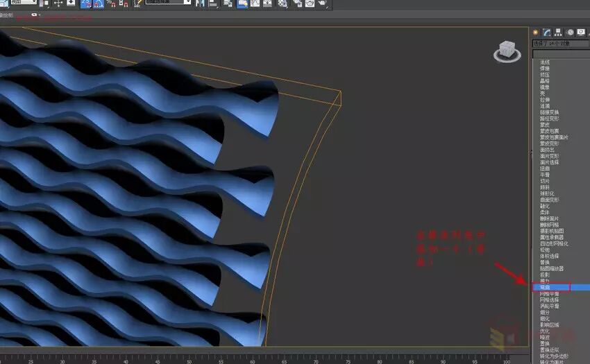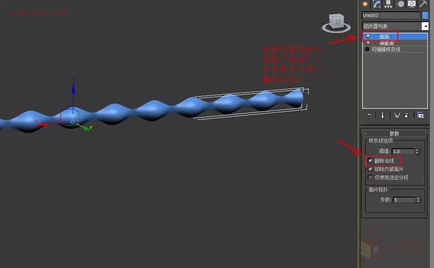 18.在修改器列表中选择“曲面”,在参数中勾选(翻转法线)。