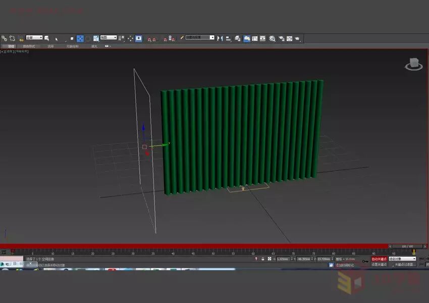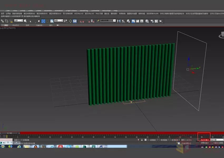 9.选择导向板,打开自动关键点,如图示做个关键帧动画,拖动时间轴,导向板从这头运动到另一头