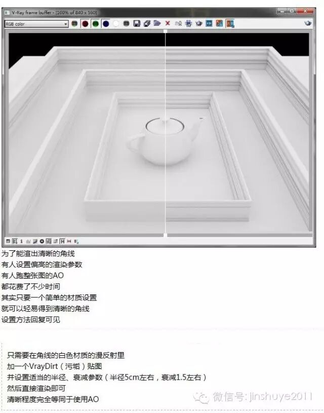 解决方案:只需要在角线的白色材质的漫反射里,加一个VaryDirt(污垢)贴图,并设置适当的半径。