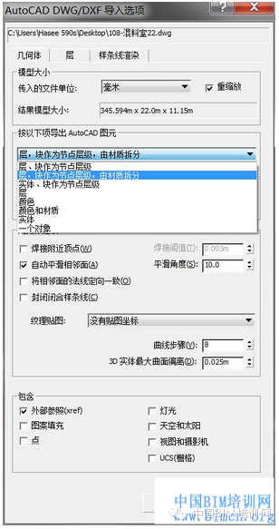 在导入max时提示设置,选择由材质拆分层级