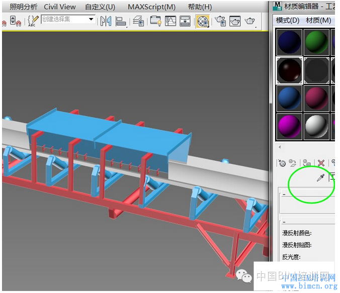 这样材质信息就一并带过来了,就可以用材质编辑器的吸管工具来吸取出材质从而进行更改