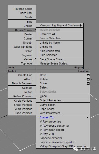 在说点级别之前呢,我需要各位先把点的类型搞清楚搞明白了!这样有助于我们后面学到点级别的认知!OK,当我们在点级别下选中一个点时,鼠标进行右击同样会弹出一个菜单来: