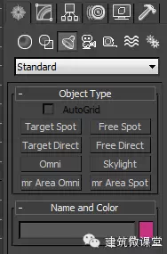 各位看到的上图为我们灯光面板下的标准灯光(PS:不是Vray灯光)!既然说到灯光,我们就来好好了解了解。